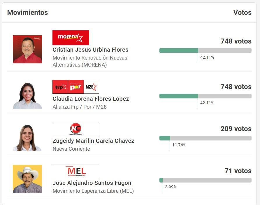 Santa Rita,Yoro – Tras escrutar el 100% de las actas de elecciones primarias, candidatos a alcalde por Santa Rita, Yoro Cristian Jesús Urbina Flores del Movimiento Morena y Claudia Lorena Flores López de los movimientos Alianza FRP / POR / M28 se encuentran con la misma cantidad de votos.