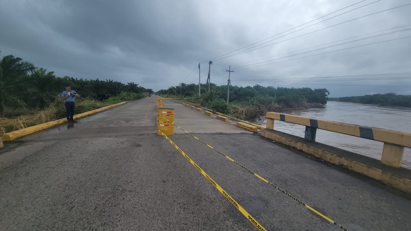 Los conductores deben transitar por una sola vía , tener paciencia para pasar por un lado , ya que una parte del acceso al puente tiene socavado por bajo .