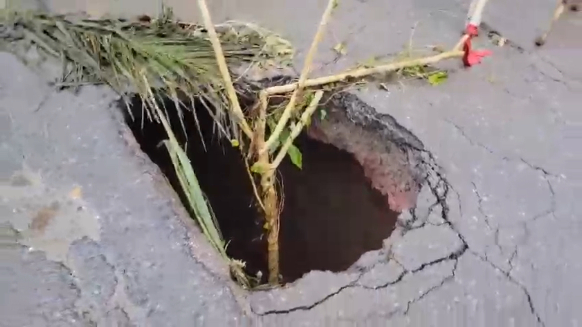 Algunas personas colocaron ramas para señalizar el lugar donde está el agujero y evitar que los conductores caigan .