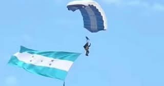 Tegucigalpa- El mayor de Infantería Ever David Maldonado Chacón, líder del equipo de Salto Libre de las Fuerzas Armadas y originario de Quezalteca, Santa Rosa de Copán, resultó herido tras una aparatosa caída durante la presentación de salto libre en el Estadio Nacional José de la Paz Herrera “Chelato” Uclés, en el marco de los 204 años de independencia de Honduras.