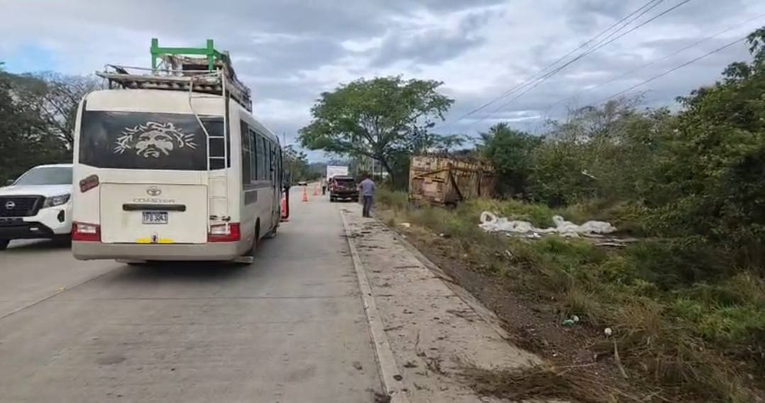 Momentos de tensión se vivieron cuando una rastra con varios vagones cargados de caña de azúcar se despistó de la carretera CA-4, antes de llegar al desvío hacia Quimistán, en Santa Bárbara.
