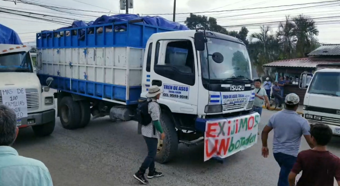 Tocoa,Colón.- Continua la problematica por la basura en esta Ciudad,están  tomados los accesos a la municipalidad ,por parte de los recolectores de basura.