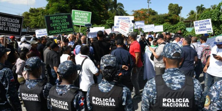 Agentes policiales dispersaron con gases lacrimógenos una protesta organizada por la Asociación Nacional de Profesionales Agropecuarios (ANPA), realizada este viernes frente al Ministerio de Agricultura. La manifestación, que formaba parte de un paro de 24 horas, exigía aumento salarial, mejores pensiones y la reposición de puestos laborales.