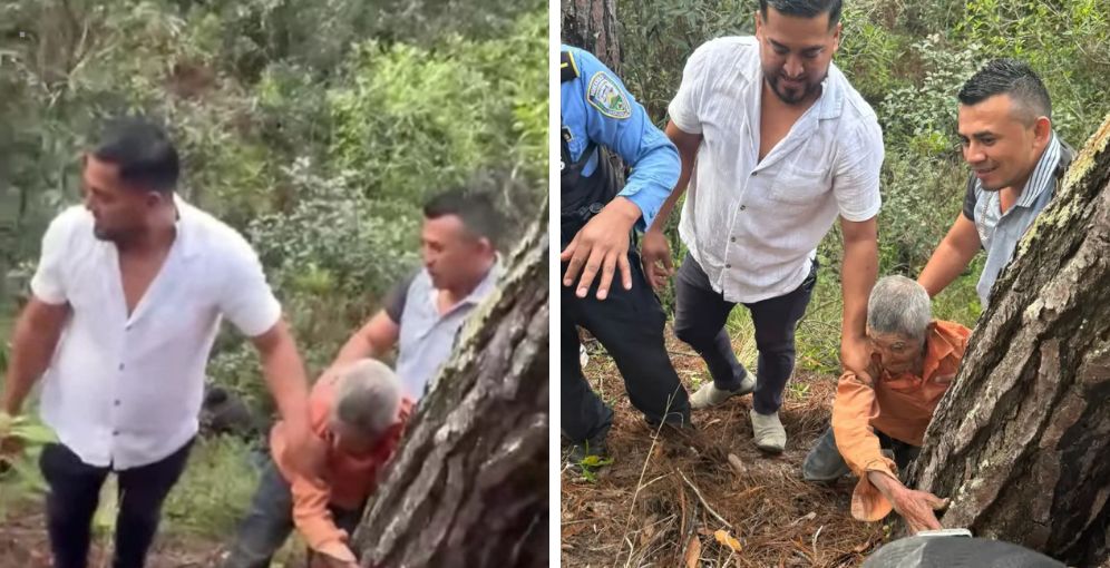 El hallazgo se logró gracias a la colaboración de dos pobladores y un oficial de la Policía Nacional, quienes encontraron al anciano entre árboles y abundante maleza. En un video difundido en redes sociales se aprecia el momento en que don Ángel María es auxiliado para salir del barranco, débil pero consciente.