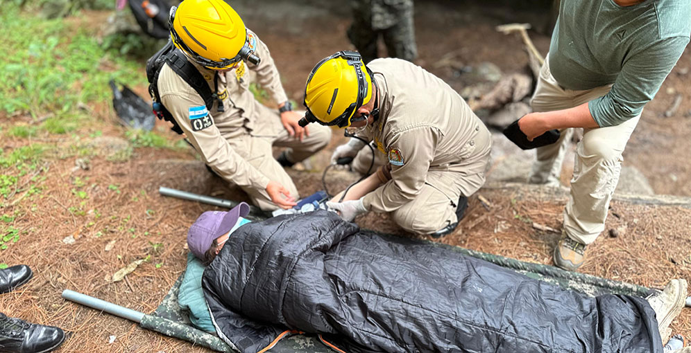 Tras varias horas de labores en un área de difícil acceso, los rescatistas lograron ubicar a Ingrid Morán, de 37 años de edad, quien presentaba fuerte dolor e inflamación en las articulaciones de sus extremidades inferiores, lo que le impedía movilizarse por sus propios medios.