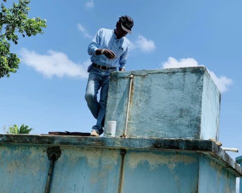Saba,Colón- Una de las medidas que está tomando las autoridades de salud pública colocaron BTI en los tanques de agua potable de la Aldea de Golondrinas,como una de las medidas para controlar el Dengue en esta Comunidad. Los técnicos de salud depositaron