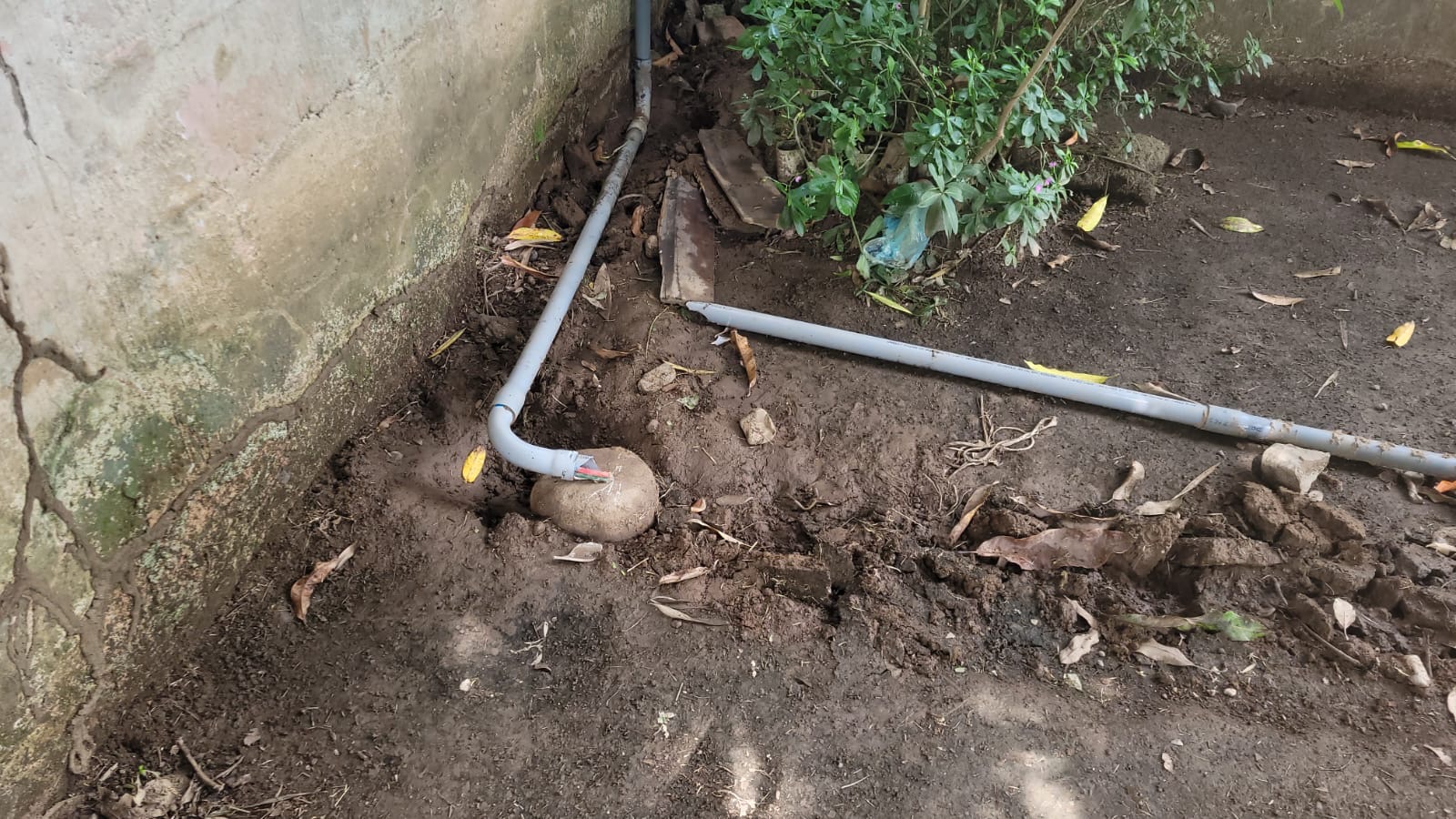 Pese a estar energizado los rateros  cortaron  el cableado con machete , ademas intentaron sacar el tubo que esta bajo tierra .