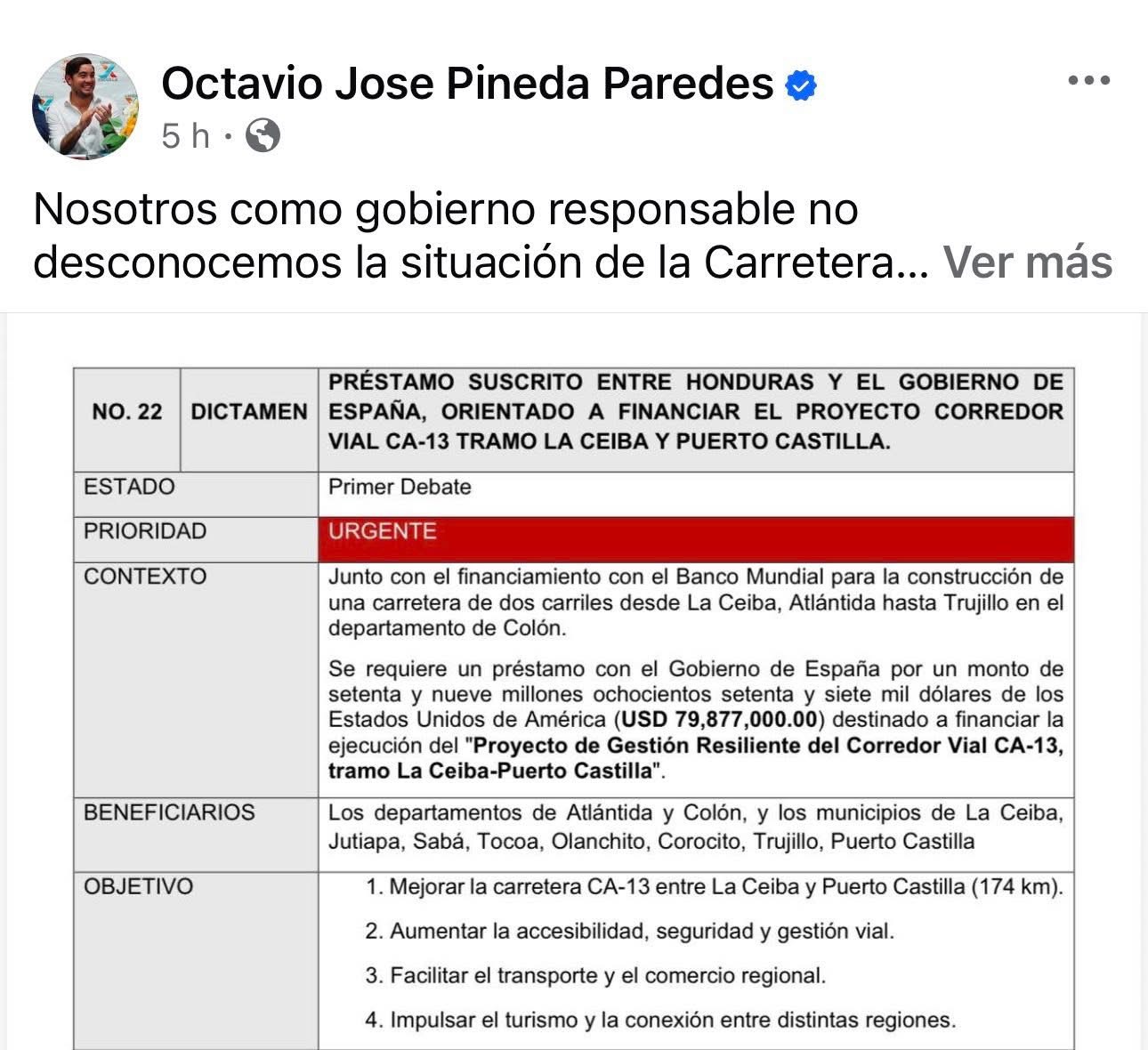 Tegucigalpa- Después de más de tres años de gestión, la reparación y el mantenimiento de la carretera CA-13, que enlaza La Ceiba con Puerto Castilla, avanza hacia su ejecución.