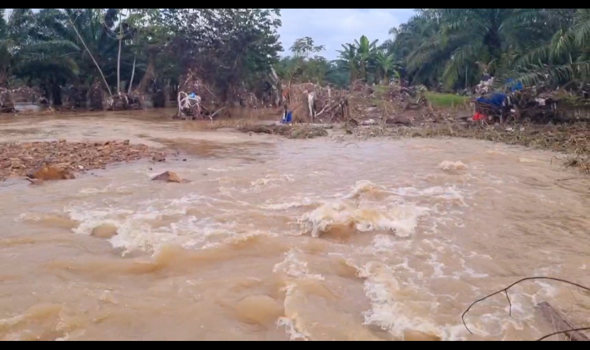El desbordamiento del río Aguan, rompió la calle y dejó sin paso en esta zona que es productora de palma y leche.