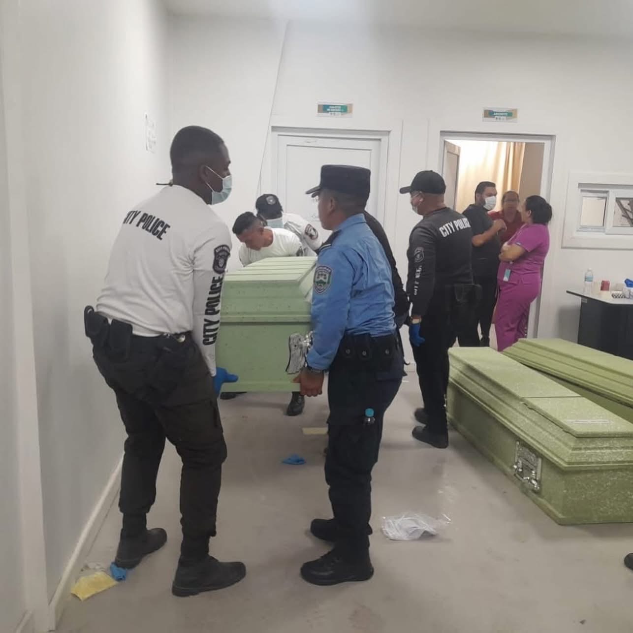 San Pedro Sula – Un vehículo de las Fuerzas Armadas de Honduras ingresó a las instalaciones de Medicina Forense con los seis cadáveres, a los cuales se les practicará la correspondiente autopsia.
