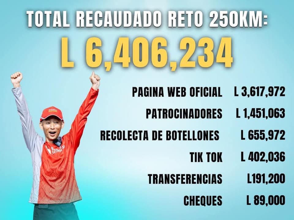 “Logramos recaudar más de 6 millones de lempiras con el Reto 250 km. Gracias a todos los que donaron a través de nuestra página Web Oficial, TikTok, los que brindaron cheques, transferencias bancarias”, escribió en sus redes sociales.