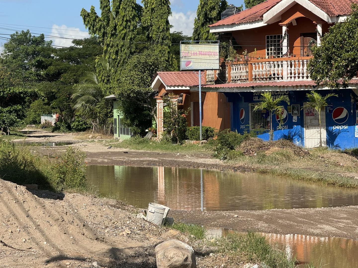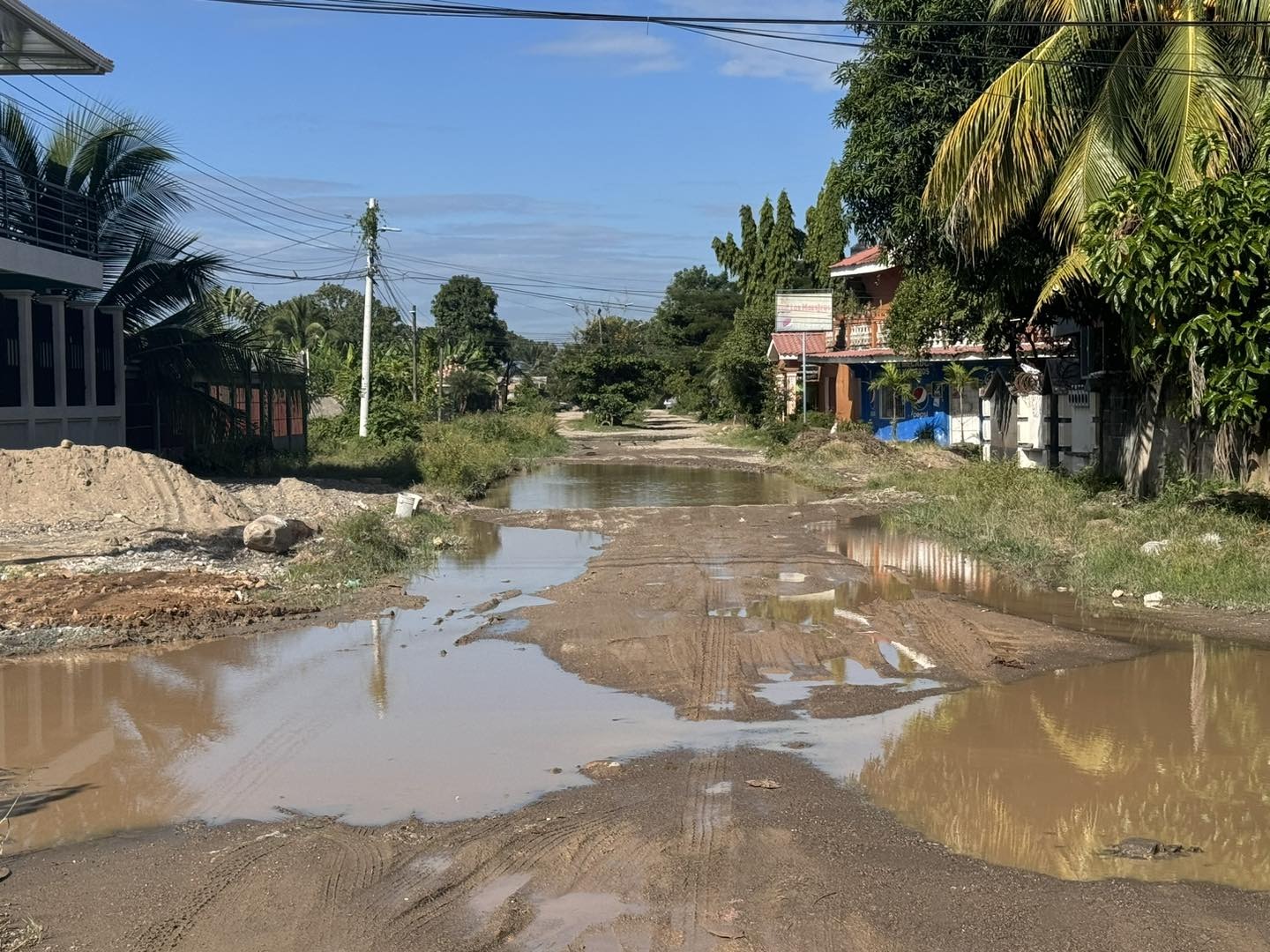 En algunos calles ya es difícil transitar a pie o en vehículos pequeños, grandes lagunas se han formado.