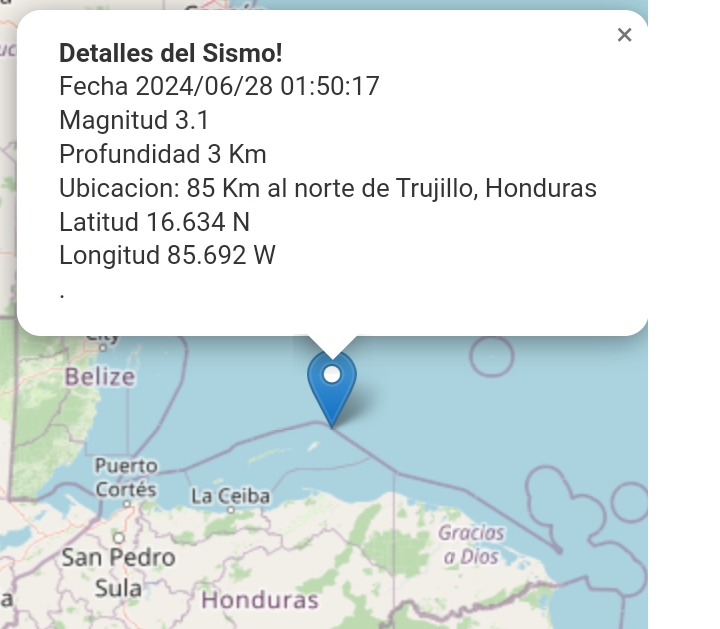 Trujillo. Un sismo de 3.1 grados se registró en la madrugada de este viernes en el Caribe de Honduras, sin causar daños en las costas del país.
