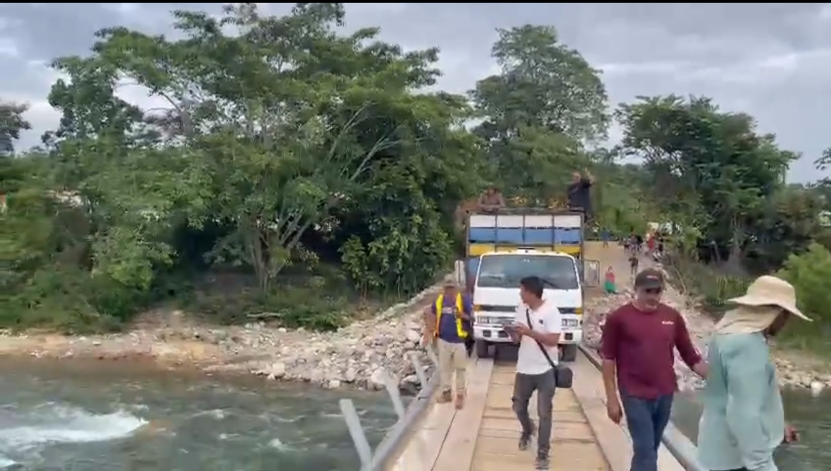 La Ceiba , Atlántida – Hoy se realizó la prueba de resistencia del puente provisional que se construyó en el vado sobre el Río Cangrejal, con el cruce de un camioncito.
