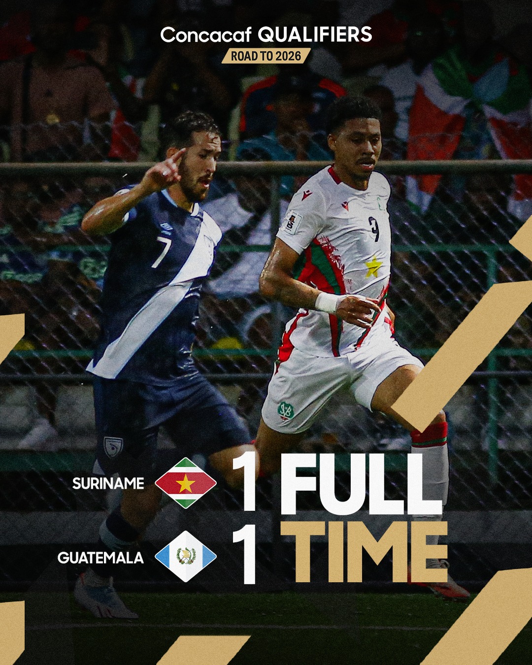Sin embargo, Virgil Misidjan de Surinam frustró esa ilusión al marcar el empate en el minuto 90+4, aprovechando un rebote tras un tiro de esquina. Este gol dejó a Guatemala con apenas dos puntos en tres partidos, mientras que Surinam se mantiene invicto y lidera el grupo con cinco puntos