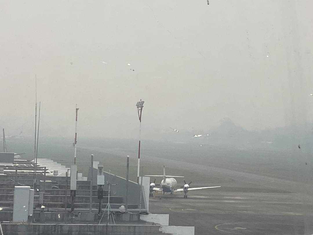 La capa de humo que cubre esta ciudad, como otras regiones de Honduras, no permiten el despegue y aterrizaje de aviones en el Aeropuerto Golosón, por lo que las autoridades aeroportuarias decidieron suspender los vuelos.