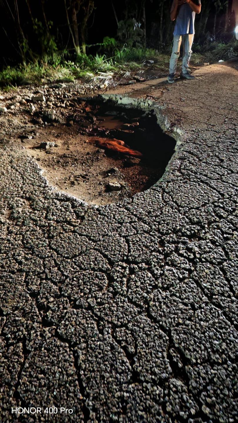 De acuerdo con la información preliminar, el conductor perdió el control del vehículo tras impactar contra el enorme agujero en la carretera, lo que provocó que la unidad diera vuelta y quedara con las llantas hacia arriba.