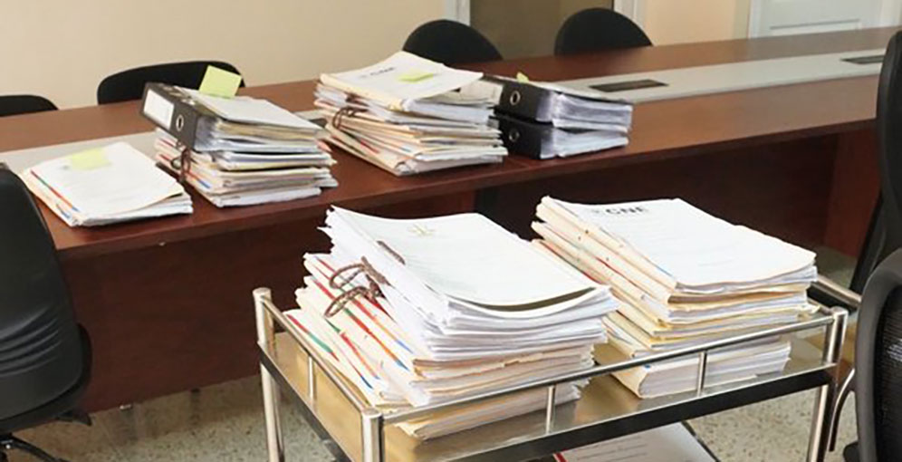 El presidente del TJE explicó que el tribunal opera en tiempo corrido y contra reloj, ya que el próximo 20 de enero deberán estar listos todos los expedientes y resoluciones para emitir las respuestas finales. En ese contexto, agradeció la colaboración del CNE y la disposición de sus funcionarios para suministrar oportunamente la documentación requerida.