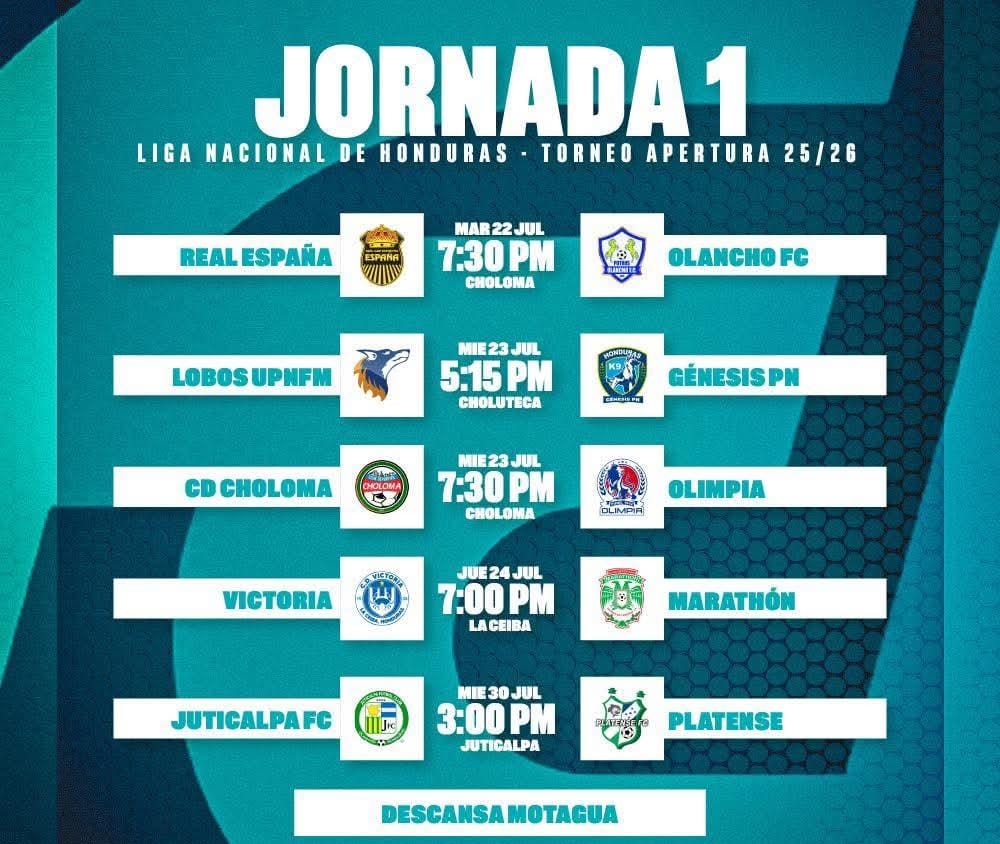 La primera jornada de la Liga Nacional de Honduras inicia este martes 22 de julio con el Real España vs Olancho FC en el Estadio Francisco Morazán a las 7:30 pm.