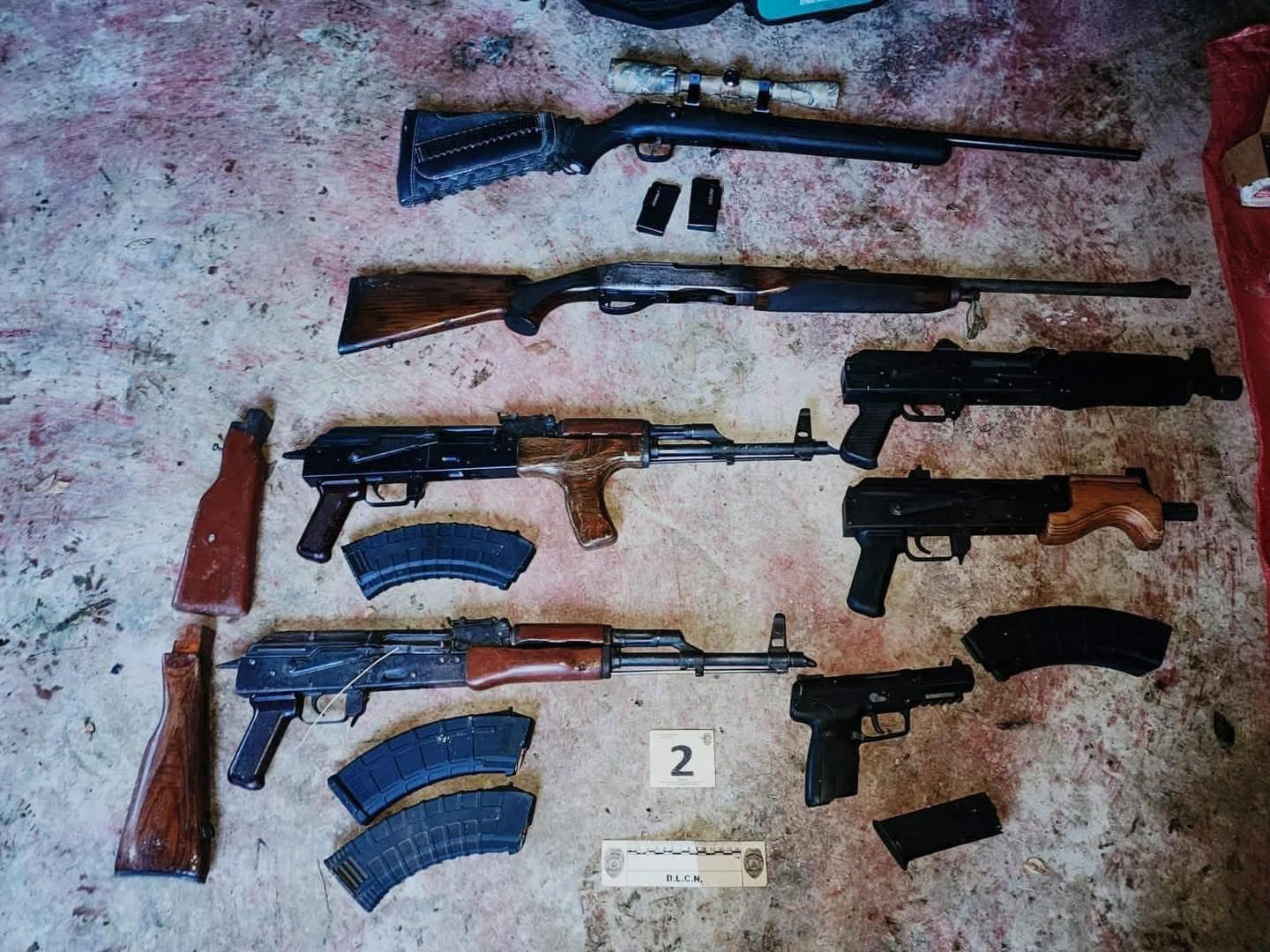 Los decomisos consisten en seis fusiles de asalto, dos pistolas, municiones de diferentes calibres de uso prohibido y comercial, cuatro vehículos, dos motocicletas y cámaras de seguridad..