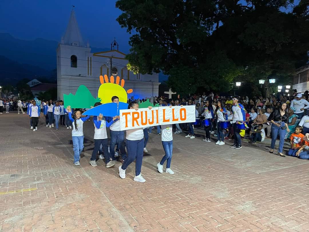 Un colorido desfile, con diversos cuadros artísticos y culturales hicieron que la noche fuera especial para esta ciudad, fundada el 18de mayo de 1525, por Herná Cortés, quien ordenó a Francisco de las Casas levantar la villa de Truxillo, siendo Juan de Medina su primer alcalde.