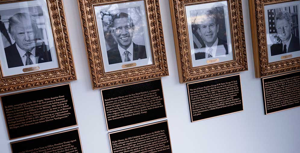 El presidente de Estados Unidos, Donald Trump, colocó placas bajo los retratos de expresidentes en la Casa Blanca que, en el caso de los demócratas Joe Biden y Barack Obama, los ridiculizan y critican de manera directa. La galería, denominada por Trump como el “Paseo de la Fama Presidencial”, fue inaugurada en septiembre pasado en la columnata del Ala Oeste y busca destacar los logros de mandatarios anteriores, aunque con un fuerte sesgo según la administración actual.