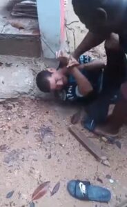 Mientras el hombre pide que no lo agredan y asegura que no ha cometido ningún ilícito, el propietario de la casa lo golpea con un palo de madera. Asimismo, le dio varios puñetazos y patadas.