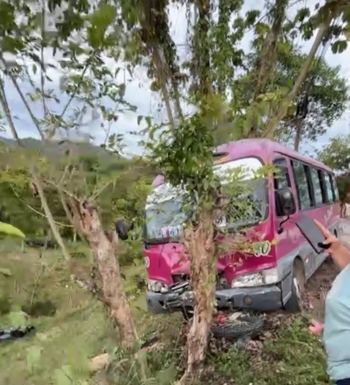 Un bus de la empresa Bárralaga impactó con un motociclista y después fue a chocar con un árbol a la orilla de la carretera.