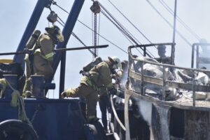 La Ceiba. La tragedia pudo haber sido mayor, pero la respuesta inmediata de pescadores artesanales y otras embarcaciones, así como navales y bomberos se pudo rescatar a unas 20 personas que iban en el Caribbean Pride, que tomó fuego en la mañana de este viernes frente a las costas de La Ceiba, Atlántida.