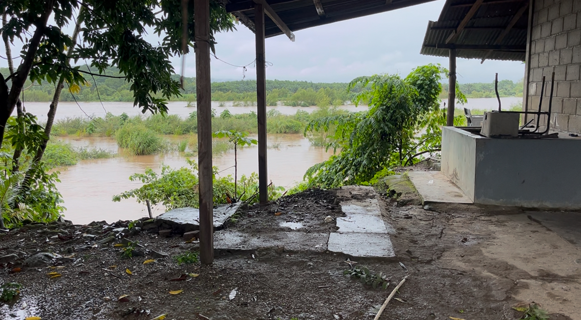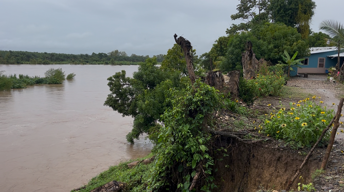 Juan Mejía nos cuenta que el río Aguan pasaba más largo de los solares que tienen en la colonia Montefresco , sin embargo cada año que pasa se acerca más .