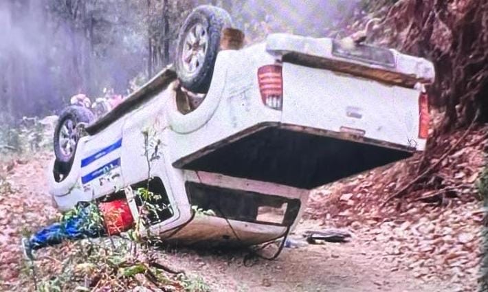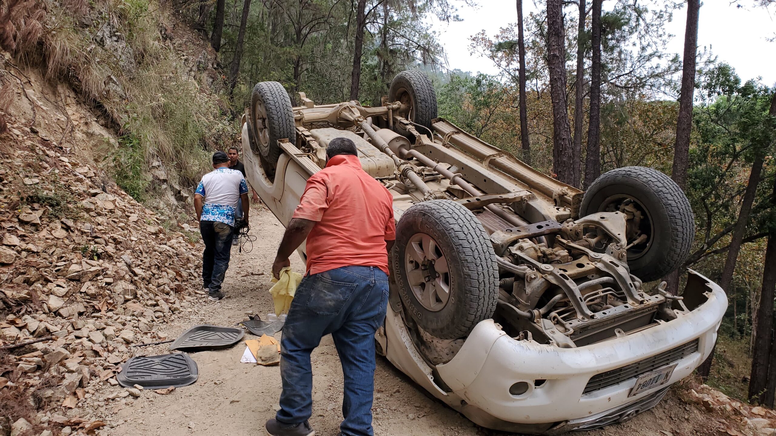 Olanchito,Yoro.- Al regresar de la comunidad de San Rafael sector Valle Arriba el vehículo que pertenece a la municipalidad de Olanchito se volcó, en el mismo se conducían empleados de la municipalidad y comunicadores sociales.