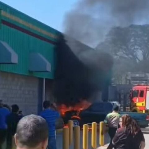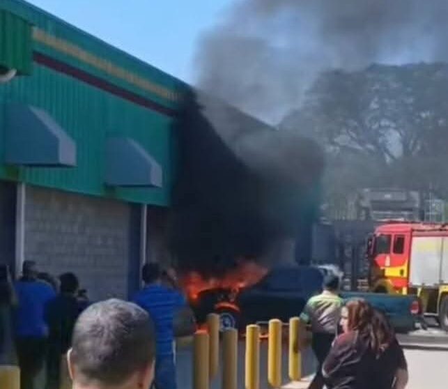 Un vehículo se incendió la mañana de este jueves en el estacionamiento de un supermercado ubicado en Cofradía, Cortés, mientras su propietaria se encontraba realizando compras en el interior del establecimiento.