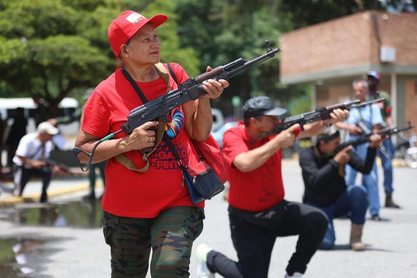 Las autoridades venezolanas justifican esta medida señalando la necesidad de “defender la patria” frente a posibles amenazas externas. En imágenes difundidas por medios oficiales se observa a grupos de personas practicando maniobras militares con armamento de guerra.