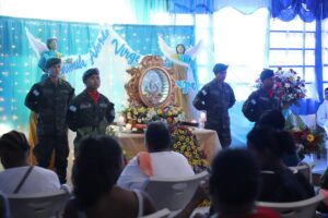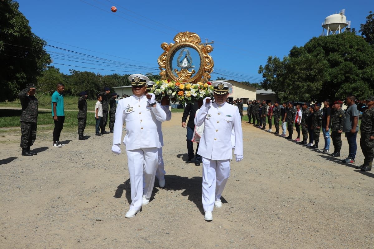 La imagen de la Morenita, fue recibida por cadetes navales, que la cargaron hasta donde estuvo expuesta para ser venerada por muchos fieles que llegaron de diversas partes del municipio de Trujillo, para rendirle homenaje a la Madre de Jesús, bajo la advocación de Suyapa.